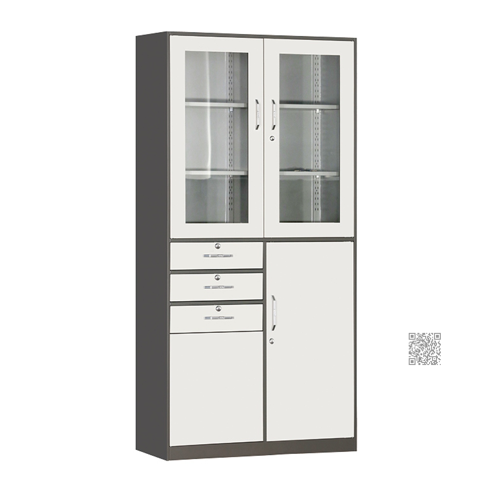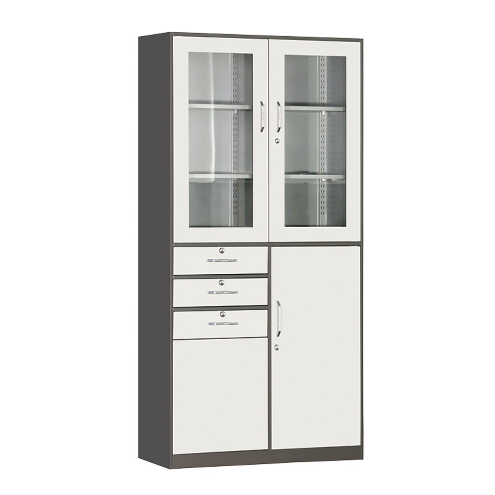 偏三屉玻门平开书柜